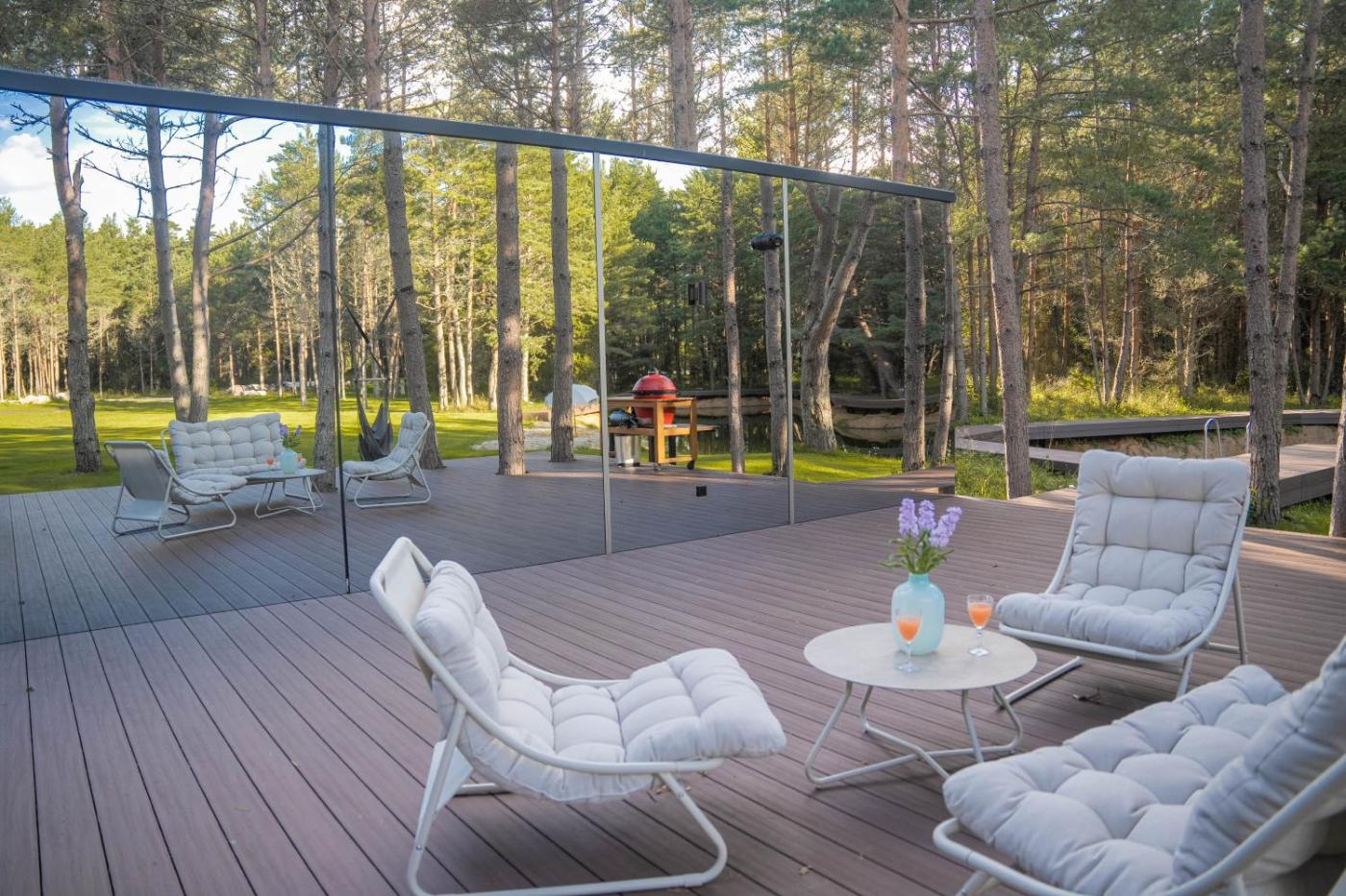 Two-Bedroom House. Guests will have a special experience as this holiday home features a sauna. The air-conditioned holiday home has 2 bedrooms, 2 bathrooms and a kitchenette. The holiday homes kitchenette is available for cooking and storing food. Boasting a terrace with garden views, this holiday home also offers heating and a flat-screen TV. The unit has 2 beds.
