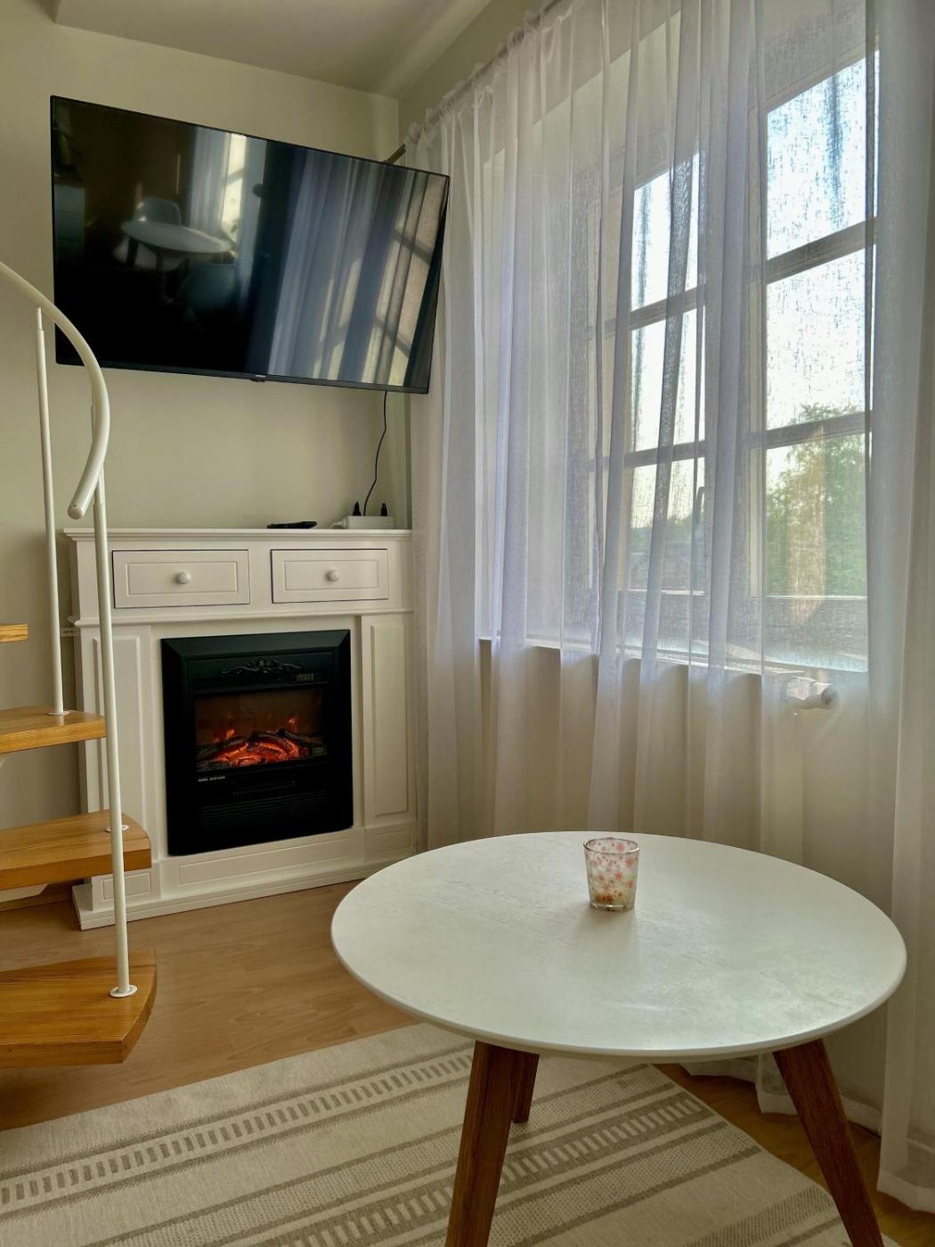 One-Bedroom Apartment. The fireplace is the standout feature of this apartment. This apartment comes with 1 living room, 1 separate bedroom and 1 bathroom with a shower. Guests can make meals in the kitchen that features a stovetop, a refrigerator, kitchenware and a microwave. The apartment features a washing machine, a wardrobe, an electric kettle, a flat-screen TV, as well as garden views. The unit has 2 beds and 1 futon.