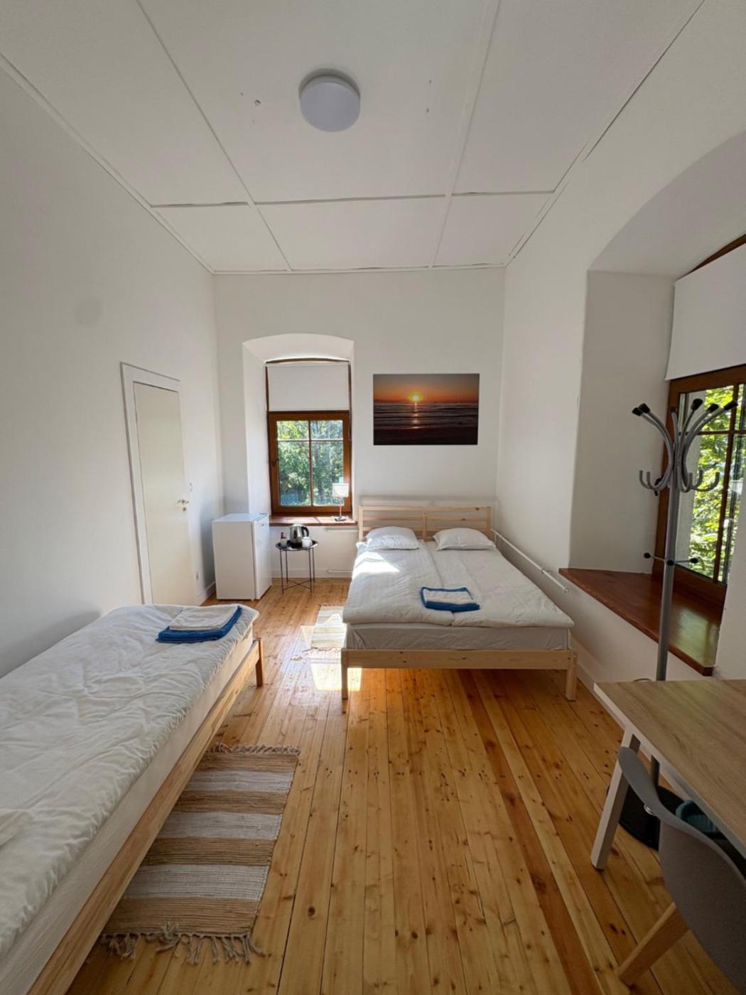 Triple Room. Providing free toiletries, this triple room includes a private bathroom with a shower. The triple room is furnished with a desk and a seating area and provides a washing machine, soundproof walls and garden views. The unit offers 2 beds. ;