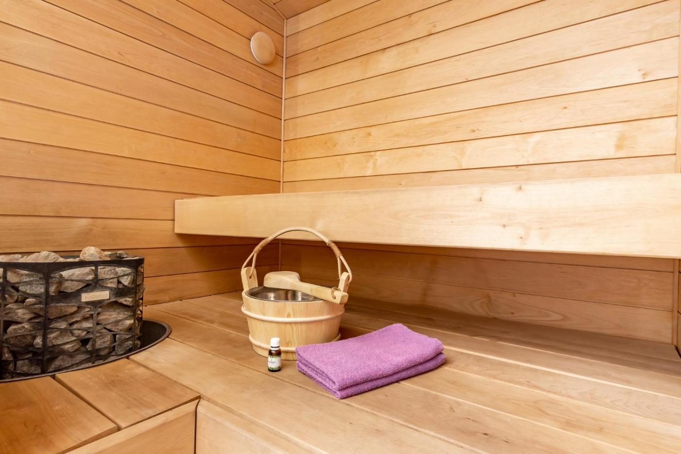 Apartment with Sauna. This apartments standout features are the hot tub, sauna and fireplace. Boasting a private entrance, this air-conditioned apartment includes 1 living room, 1 separate bedroom and 1 bathroom with a walk-in shower and a bath. Meals can be prepared in the well-fitted kitchen, which is fitted with a stovetop, a refrigerator, a dishwasher and kitchenware. Featuring a balcony with garden views, this apartment also offers a washing machine and a flat-screen TV with cable channels. The unit has 2 beds. ;
