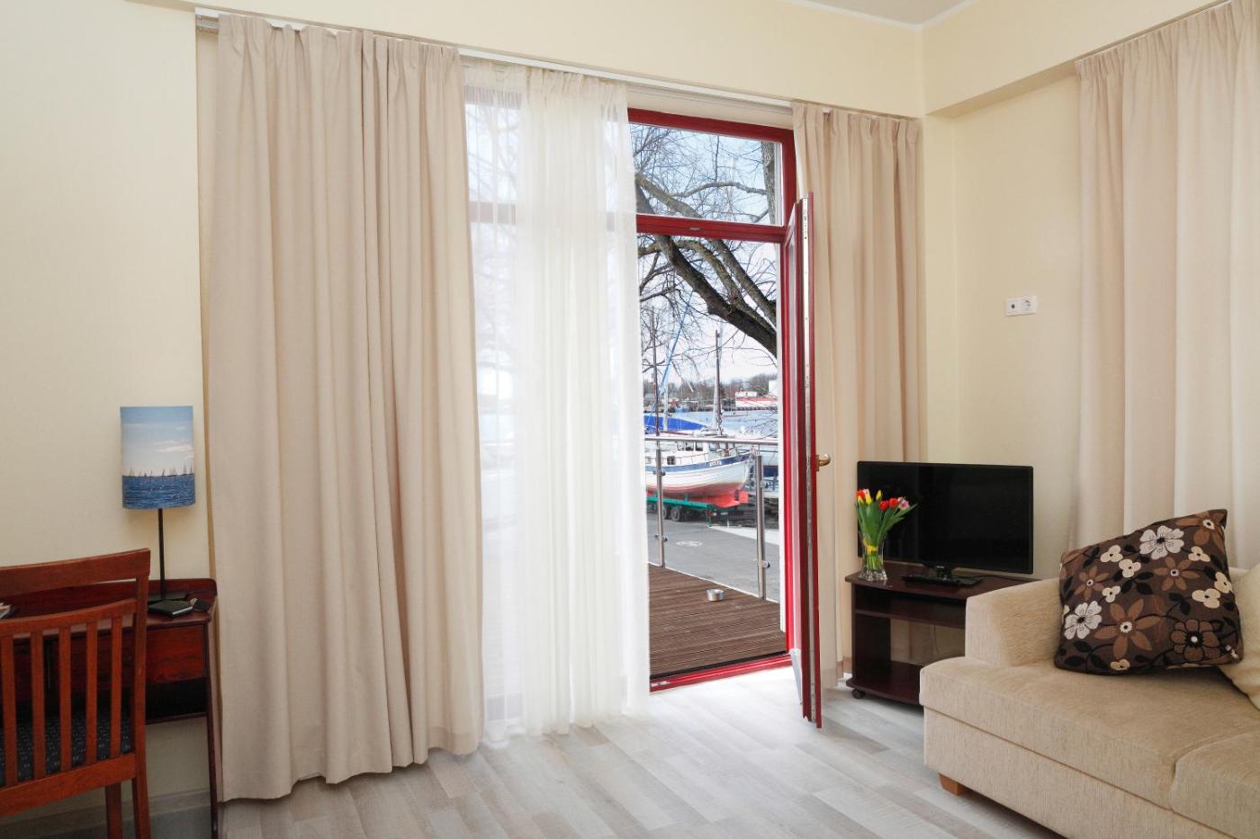 Some of Pärnu Yacht Club’s rooms include a seating area and a balcony. Some of the spacious balconies offer views of the marina.