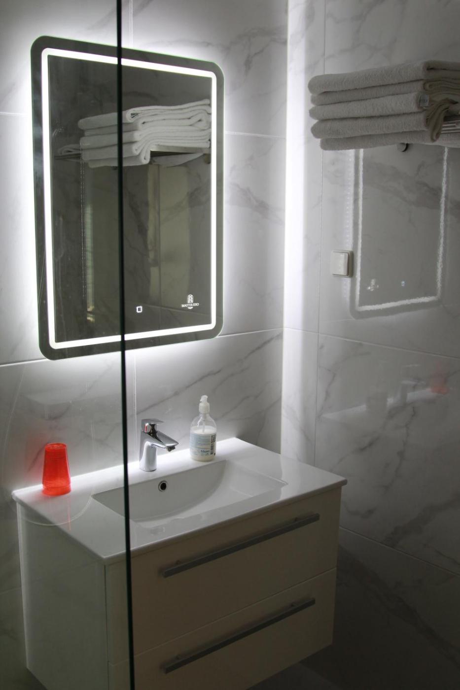 Apartment with Sauna and Sea View. Guests will have a special experience as this apartment features a sauna. This apartment is comprised of 1 living room, 1 separate bedroom and 1 bathroom with a walk-in shower and free toiletries. The well-fitted kitchen features a stovetop, a refrigerator, a dishwasher and kitchenware. The air-conditioned apartment offers a flat-screen TV with cable channels, a washing machine, a tea and coffee maker, a wardrobe as well as sea views. The unit offers 3 beds. ;