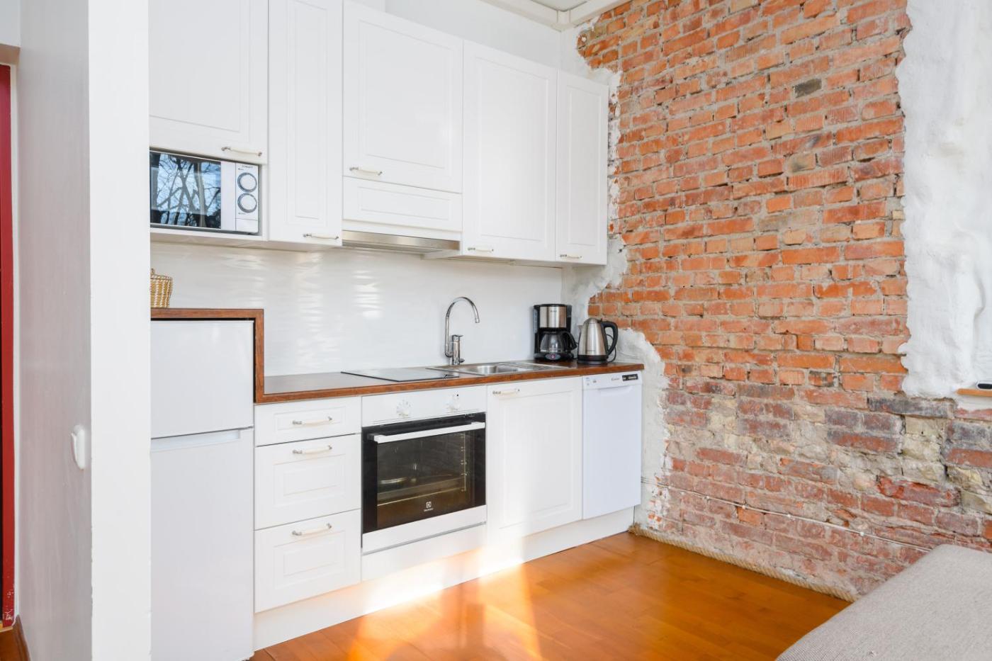 One-Bedroom Apartment. The sauna is the standout feature of this apartment. Guests can make meals in the kitchen that features a stovetop, a refrigerator, a dishwasher and kitchenware. The air-conditioned apartment features a flat-screen TV, a seating area, a dining area, a wardrobe as well as garden views. The unit has 2 beds.