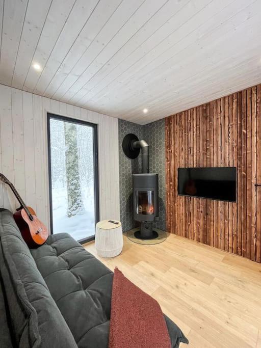 One-Bedroom House. This holiday home boasts a sauna and a fireplace. Featuring a private entrance, this air-conditioned holiday home comprises 1 living room, 1 separate bedroom and 1 bathroom with a shower and a hairdryer. Guests will find a stovetop, a refrigerator and kitchenware in the kitchen. The holiday home also provides guests with a barbecue. Boasting a terrace with garden views, this holiday home also provides a tea and coffee maker and a flat-screen TV with cable channels. The unit offers 2 beds.