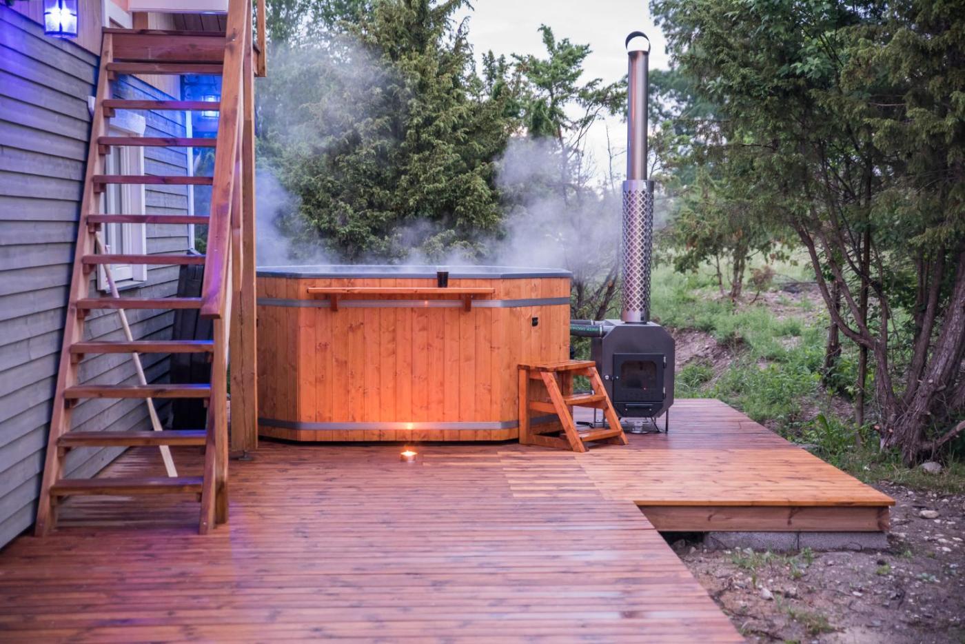 Holiday Home. This holiday homes standout features are the hot tub, sauna and fireplace. Boasting a private entrance, this air-conditioned holiday home features 1 living room, 3 separate bedrooms and 4 bathrooms with a walk-in shower and a bath. Guests will find a refrigerator, kitchenware, an oven and a tea and coffee maker in the well-equipped kitchen. The holiday home also comes with a barbecue. Featuring a terrace with garden views, this holiday home also features a washing machine and a flat-screen TV. The unit has 9 beds.