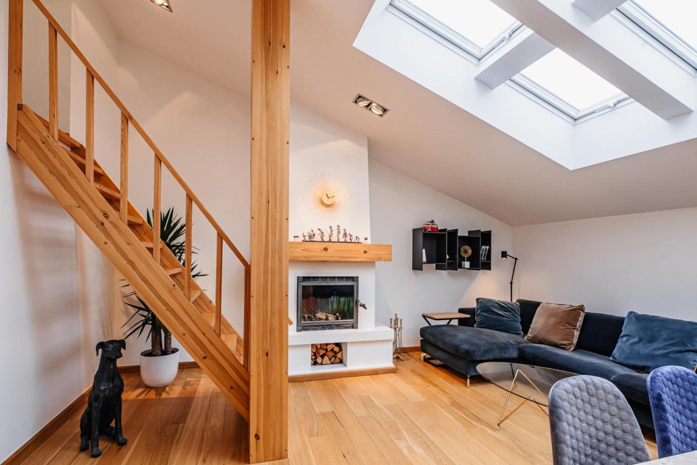 Apartment. This apartments standout features are the sauna and fireplace. This spacious apartment features 1 living room, 4 separate bedrooms and 1 bathroom with a bath and free toiletries. The well-equipped kitchen has a stovetop, a refrigerator, a dishwasher and kitchenware. The air-conditioned apartment features a flat-screen TV with cable channels, a washing machine, soundproof walls, a tea and coffee maker as well as city views. The unit has 8 beds.