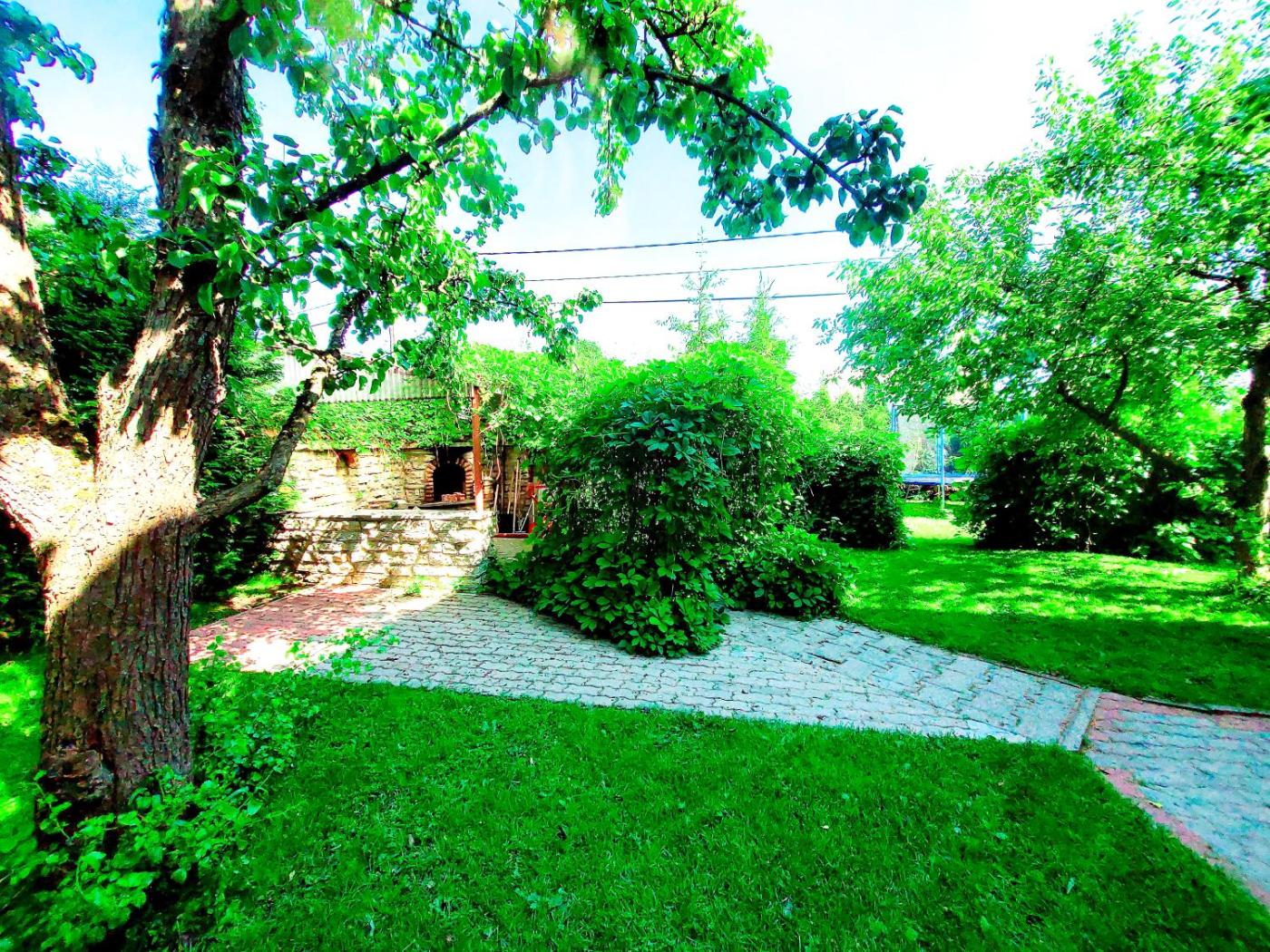 The apartment has an outdoor fireplace and a picnic area.