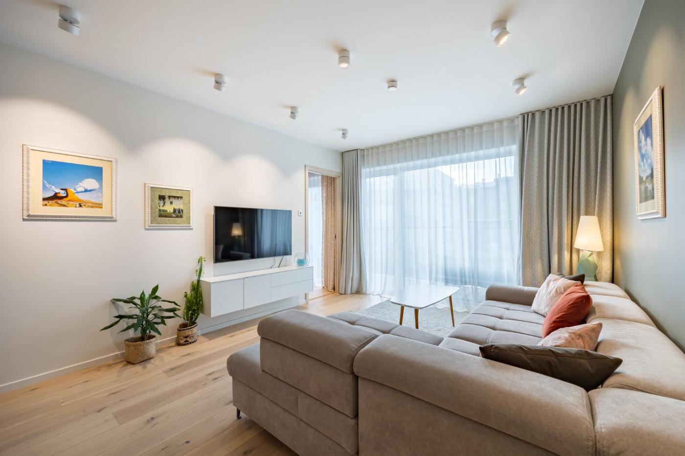 One-Bedroom Apartment. The well-fitted kitchen features a stovetop, a refrigerator, a dishwasher and kitchenware. A sofa, a flat-screen TV, a washing machine and a balcony are featured in this spacious apartment. The unit offers 2 beds.
