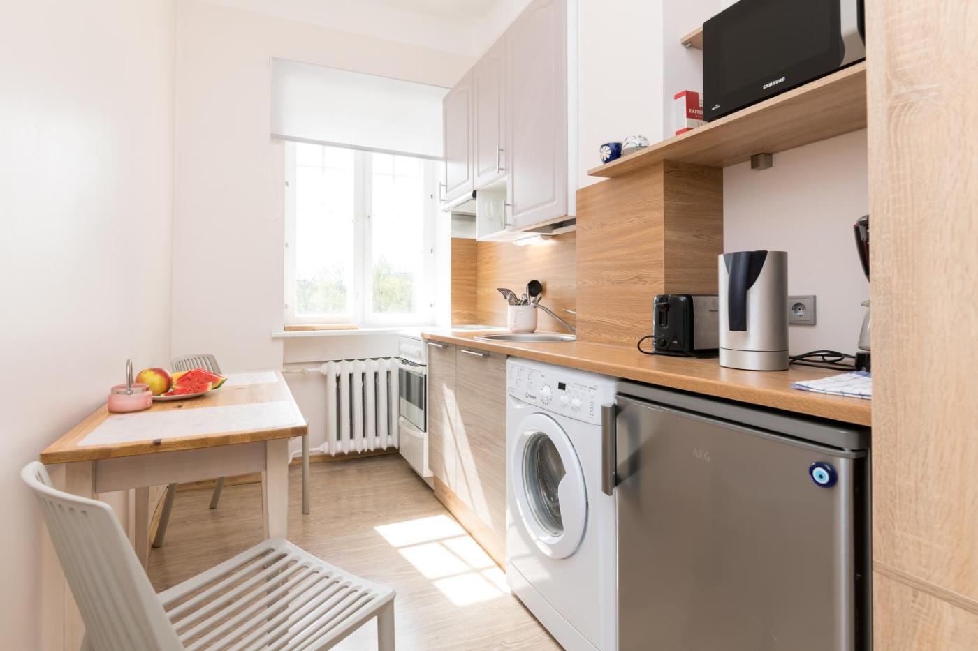 Two-Bedroom Apartment. Boasting a private entrance, this apartment comes with 1 living room, 2 separate bedrooms and 1 bathroom with a bath and a shower. The well-equipped kitchen has a stovetop, a refrigerator, kitchenware and an oven. The apartment features a washing machine, soundproof walls, a tea and coffee maker, a flat-screen TV with cable channels, as well as city views. The unit has 4 beds.