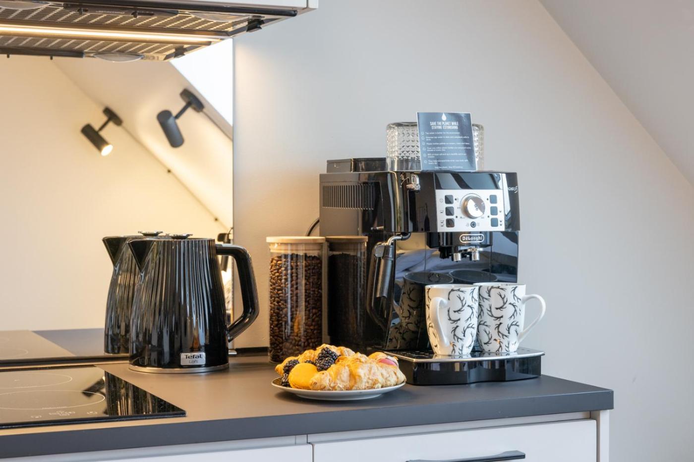 Studio Apartment. Featuring a private entrance, this apartment also is comprised of 1 bedroom, a seating area and 1 bathroom with a walk-in shower and a hairdryer. Guests can make meals in the kitchen that is fitted with a stovetop, a refrigerator, a dishwasher and kitchenware. The apartment offers a washing machine, a tea and coffee maker, a dining area, a wardrobe and a flat-screen TV. The unit offers 1 bed.
