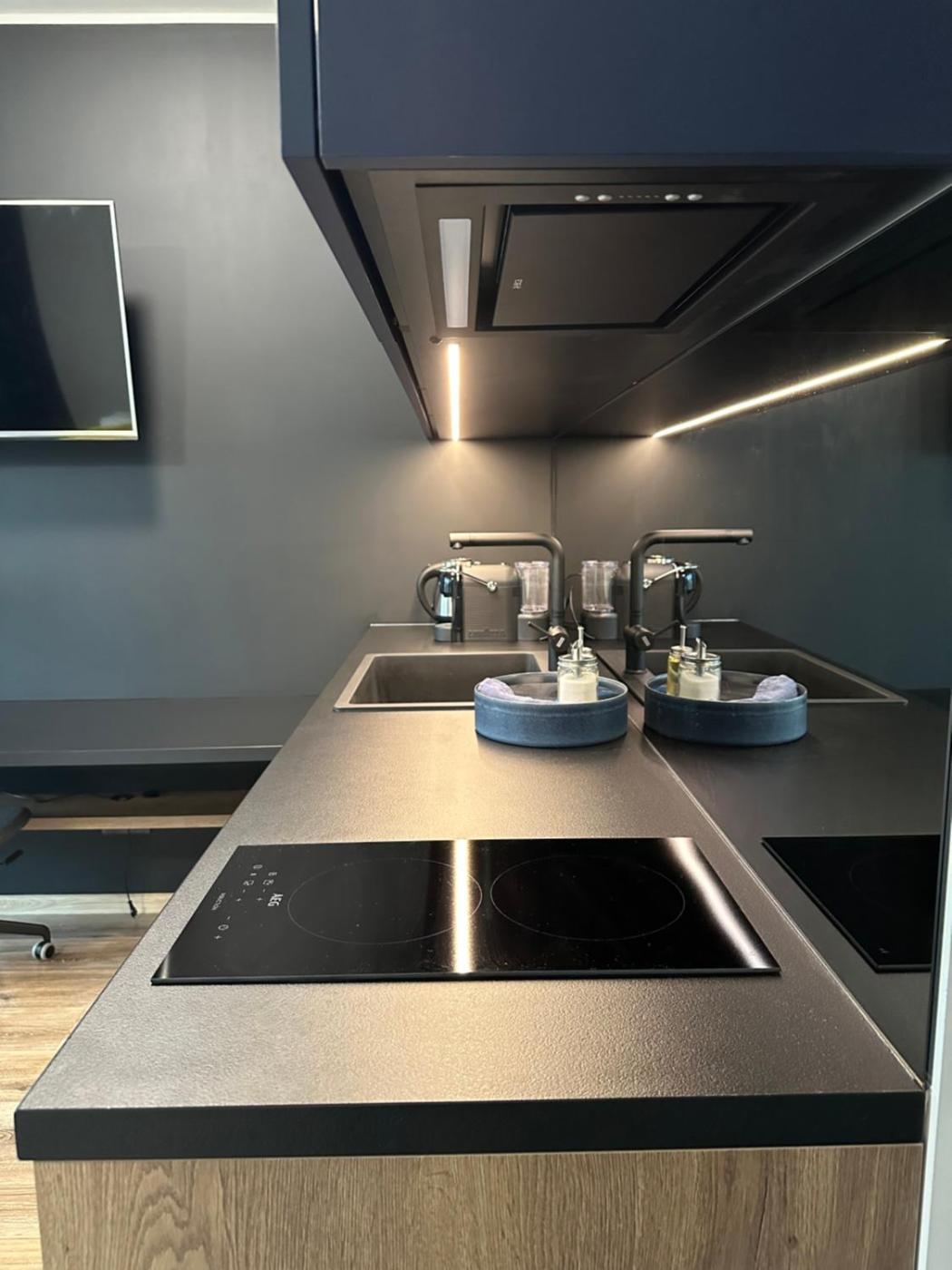 Studio Apartment with Queen Bed. This apartment is comprised of 1 living room, 1 separate bedroom and 1 bathroom with a walk-in shower and a hairdryer. The well-fitted kitchenette features a stovetop, a refrigerator, a dishwasher and kitchenware. Featuring a balcony with ancourtyard view, this apartment also offers a washing machine and a flat-screen TV with cable channels. The unit offers 1 bed.