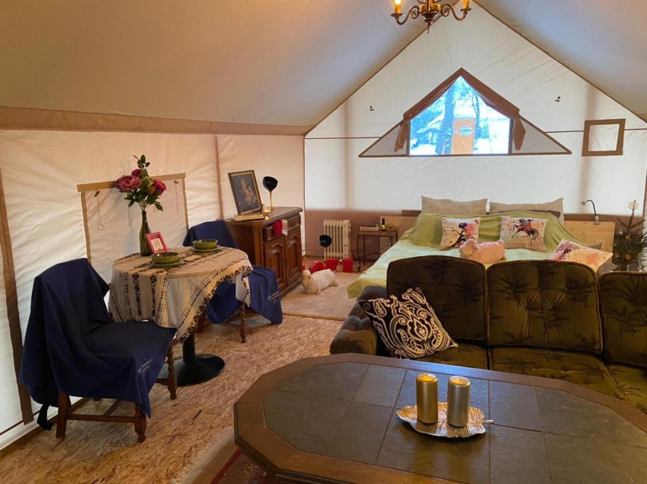 Tent. Featuring a high chair for children, parquet floors and a tiled floor, this tent includes a shared bathroom. There is an electric kettle, a barbecue and a terrace and complimentary winechampagne is available for guests. The unit has 3 beds. ;
