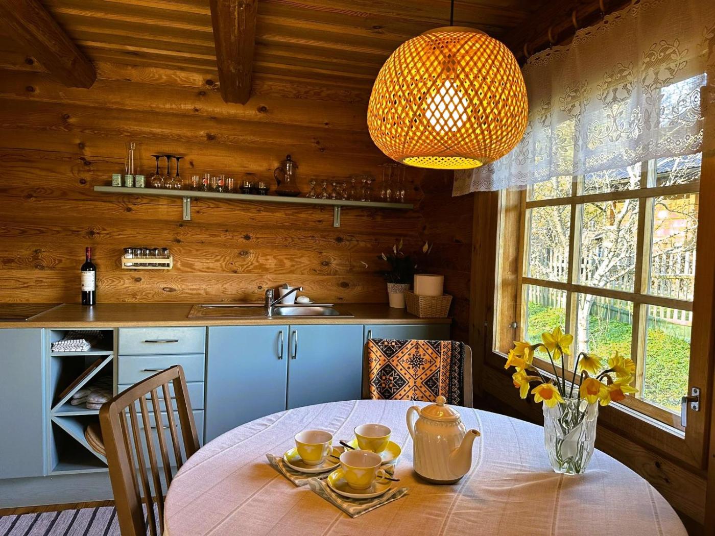 One-Bedroom House. This holiday home features a sauna and a fireplace. Boasting a private entrance, this holiday home features 1 living room, 1 separate bedroom and 1 bathroom with a shower and a hairdryer. Guests will find a stovetop, a refrigerator, kitchenware and an oven in the fully equipped kitchen. The holiday home also comes with a barbecue. The holiday home features a washing machine, a seating area, an electric kettle as well as a terrace with garden views. The unit has 4 beds.