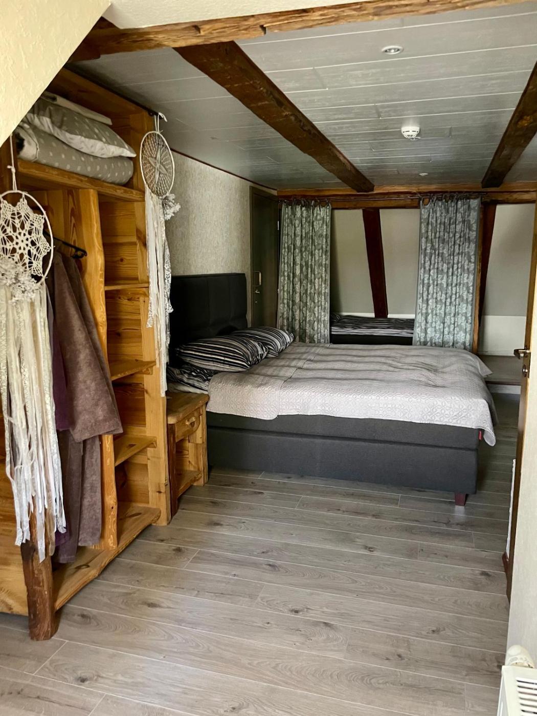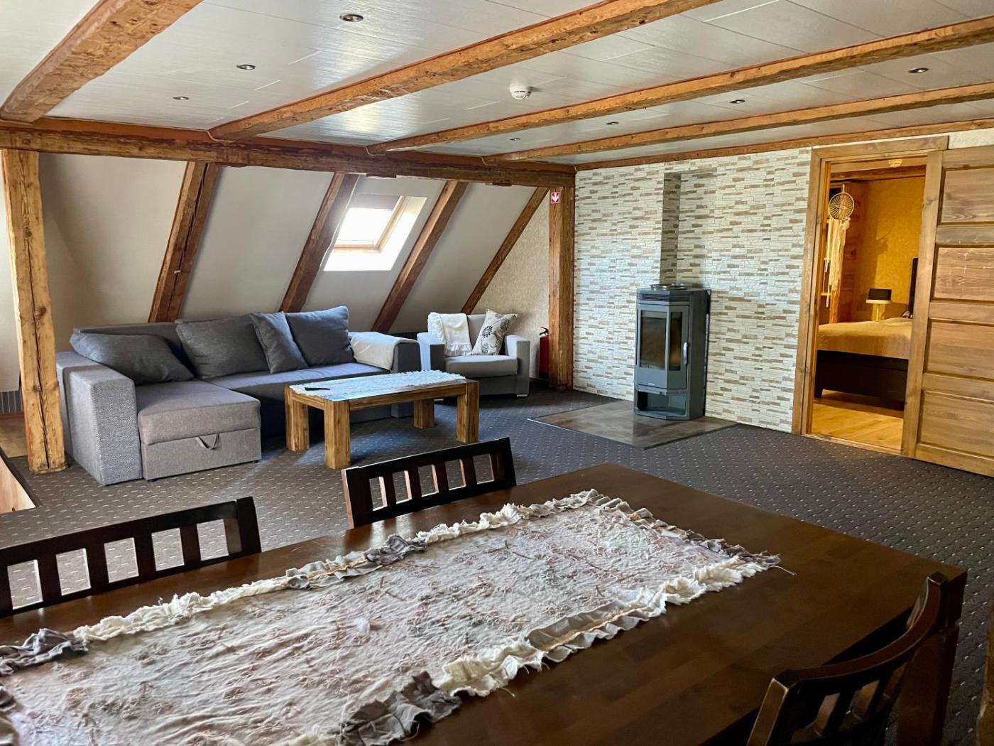 Deluxe Apartment. A spacious, duplex apartment with wooden beams and a fireplace.